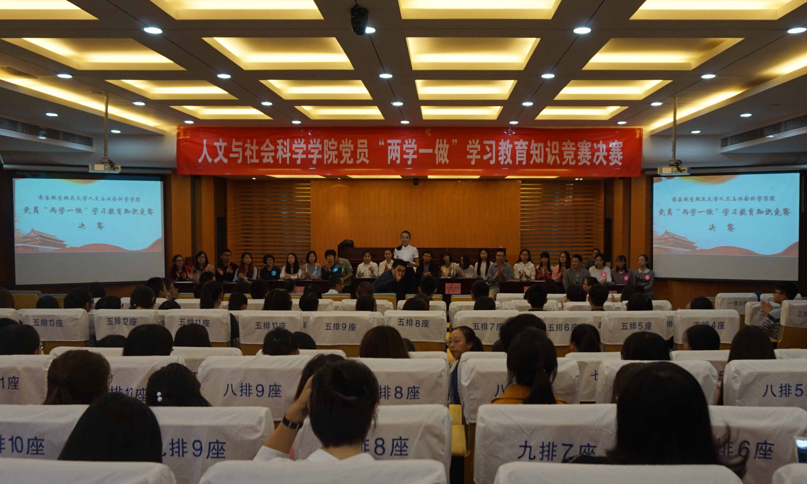 全体师生党员开展应知应会50题测试的基础上,充分调动党支部积极性,由教工党支部与学生党支部共同组成6只队伍,在决赛中学习协作一展党员风采。