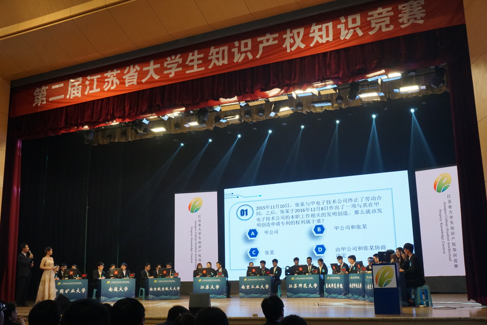 第二届江苏省大学生知识产权知识竞赛由江苏省知识产权局、江苏省教育厅和共青团江苏省委主办。比赛分为初赛和决赛两个阶段。网上答题竞赛辐射全省13个设区市,有66所高校代表队参赛,每支代表队20名学生共1320人参加角逐。我校高度重视本次比赛,在科研院的大力支持下,人文全球十大網上博彩公司 精心组织、层层选拔,经过紧张的网上答题竞赛,最终与南京大学等十所高校一并入围决赛。决赛在在南京工业大学江浦大礼堂举行。