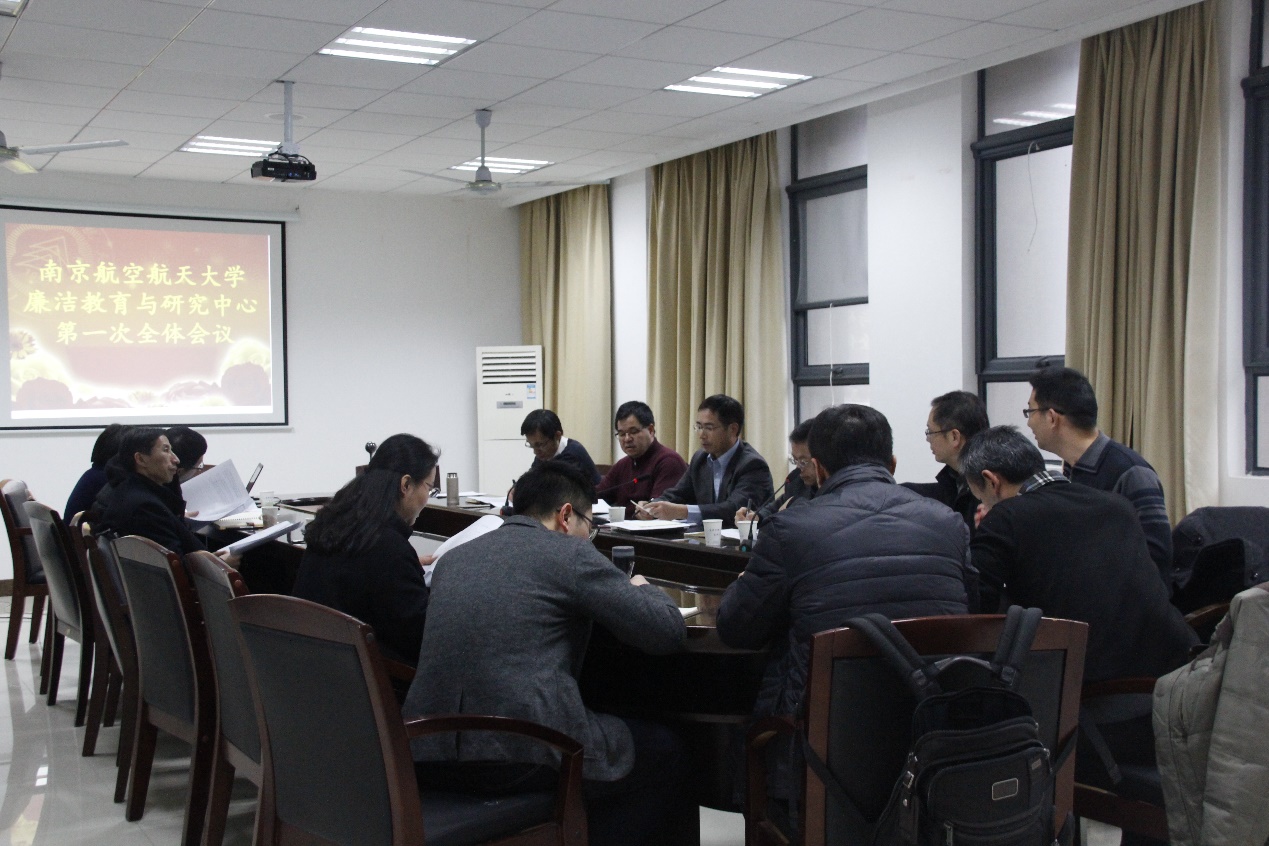 2018年12月25日下午,廉洁教育与研究中心第一次全体会议在人文全球十大網上博彩公司 召开。南京航空航天大学纪委书记、研究中心主任杭育新主持会议。人文院院长、中心副主任王建文,纪委副书记、中心副主任张海艮等相关成员参加会议。