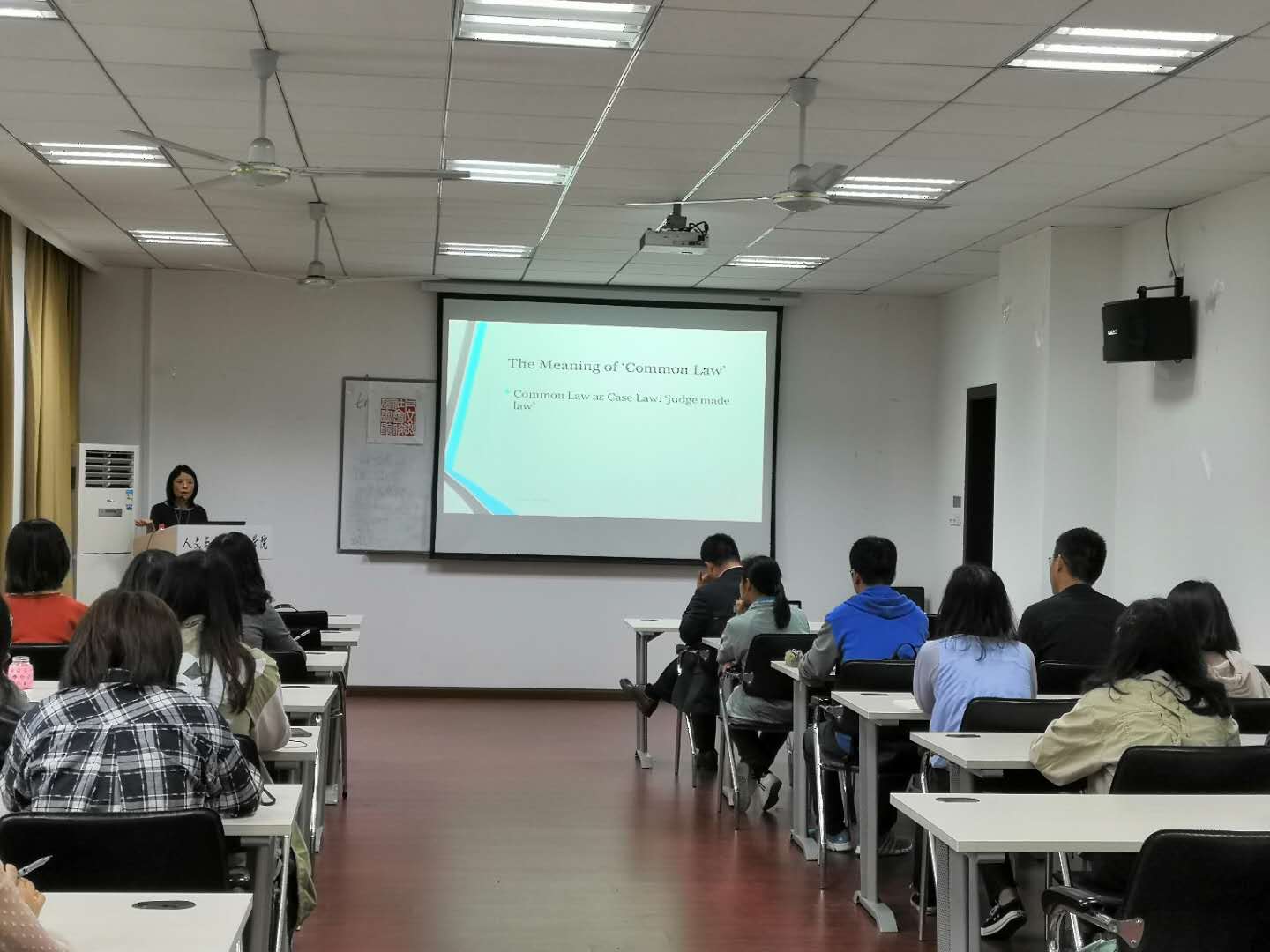 会谈结束后,沈安琪教授为全球十大網上博彩公司 师生做了一场题目为“英国法律体系与脱欧”的讲座,院长王建文、院长助理兼法律系主任王炳以及全球十大網上博彩公司 教师代表陈洁、刘耀彬、熊敬等参加了学术交流。