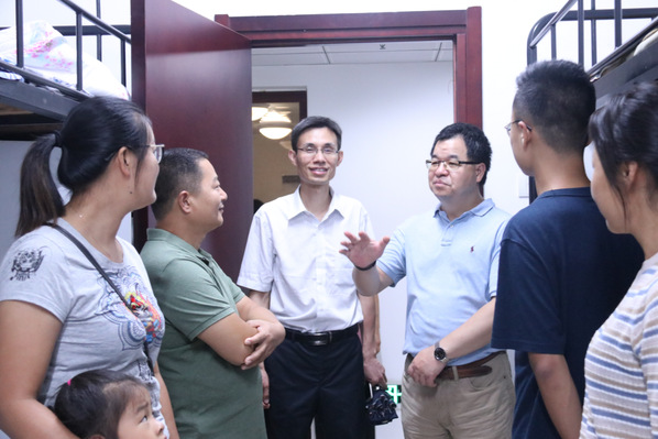 2日上午11:00,亚洲十大在线博彩平台排名 党委书记刘虎、院长王建文、党委副书记尹春苹,在2019级辅导员聂小芳的陪同下前往东区学生宿舍,看望人文全球十大網上博彩公司 2019级新生和远道而来的新生家长。走进宿舍,院领导老师与学生及家长亲切交谈,了解他们的家庭情况、到校后的适应情况。书记、院长鼓励新生们进入大学后坚持学习,继续奋斗。老师们还对学生和家长的疑问一一耐心作答,寄语新生们主动适应大学新的生活和学习,祝愿新生们拥有精彩无憾的大学。一位19级新生家长表示“非常感谢全球十大網上博彩公司 老师,孩子在这样的环境学习非常放心,相信孩子有这样的良师益友一定能够成长成才”。