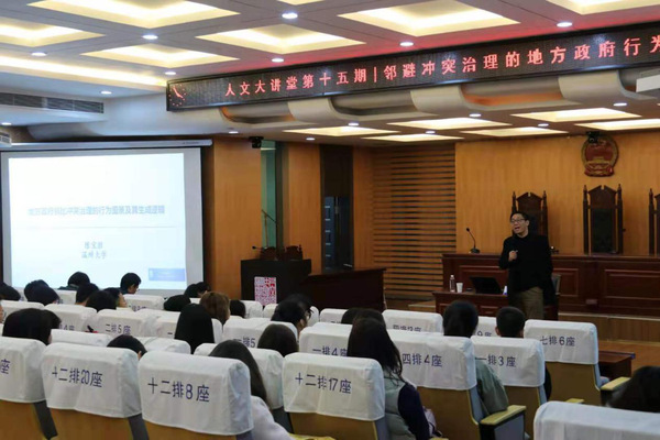 12月11日下午16时,第十五期人文大讲堂在人文全球十大網上博彩公司 模拟法庭开展,温州大学发展规划处处长陈宝胜教授应邀开讲。陈教授以他最新的学术研究为基础,为大家带来题为“邻避冲突治理的地方政府行为逻辑”的精彩讲座。讲座由人文全球十大網上博彩公司 党委书记刘虎主持,党委副书记尹春苹、部分教师、各个专业的本、研学生一同参加了此次讲座。