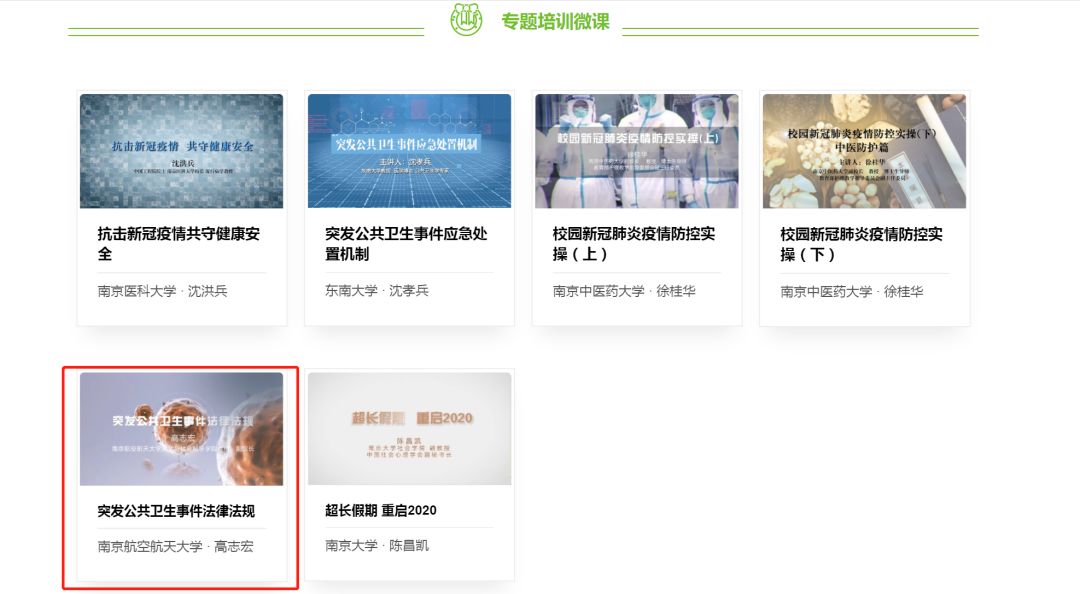 “江苏高校疫情防控培训网” 专题培训微课之《突发公共卫生事件法律法规》