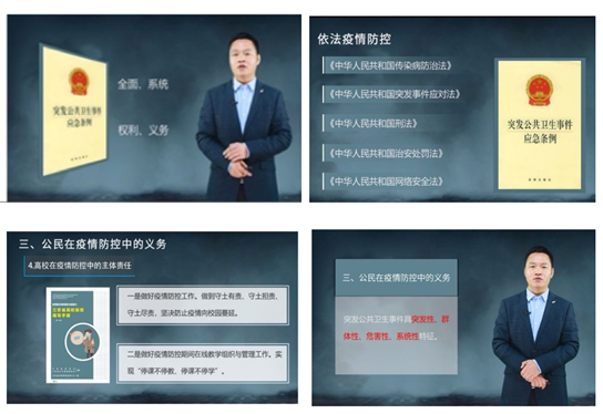 为进一步加强学校疫情防控法治宣传,引导广大师生深入了解疫情防控工作有关的法律知识,促进疫情防控工作依法有序开展,我校充分利用线上平台,全力开展防控疫情普法宣传教育工作。