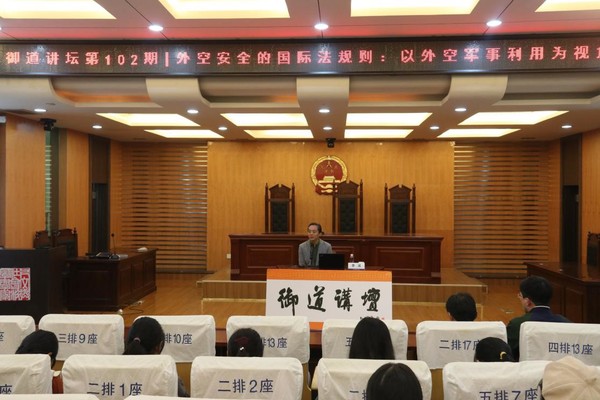 11月6日晚上七点,我校第102期御道讲坛暨第19期人文大讲堂在江宁校区亚洲十大在线博彩平台排名 模拟法庭举办。本次讲坛邀请到北京师范大学法全球十大網上博彩公司 副院长李滨教授。李教授以“外空安全的国际法规则:以外空军事利用为视角”为主题给同学们和老师们带来了一场精彩的讲座。
