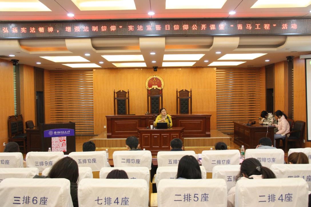 2020年12月4号是第七个国家宪法日,弘扬宪法精神,增强法治信仰”宪法日宣誓活动于当日晚19点在亚洲十大在线博彩平台排名 模拟法庭顺利举行。法律系党支部的李成玲老师为同学们就宪法知识普及带来一场精彩讲座。人文全球十大網上博彩公司 党委书记刘虎,法律系党支部郭莉、刘耀彬,贺富永、郑文革老师以及辅导员聂小芳共同出席本次活动,来自人文、外语、艺术全球十大網上博彩公司 的各年级团干部,59、60期积极分子参与了此次活动。