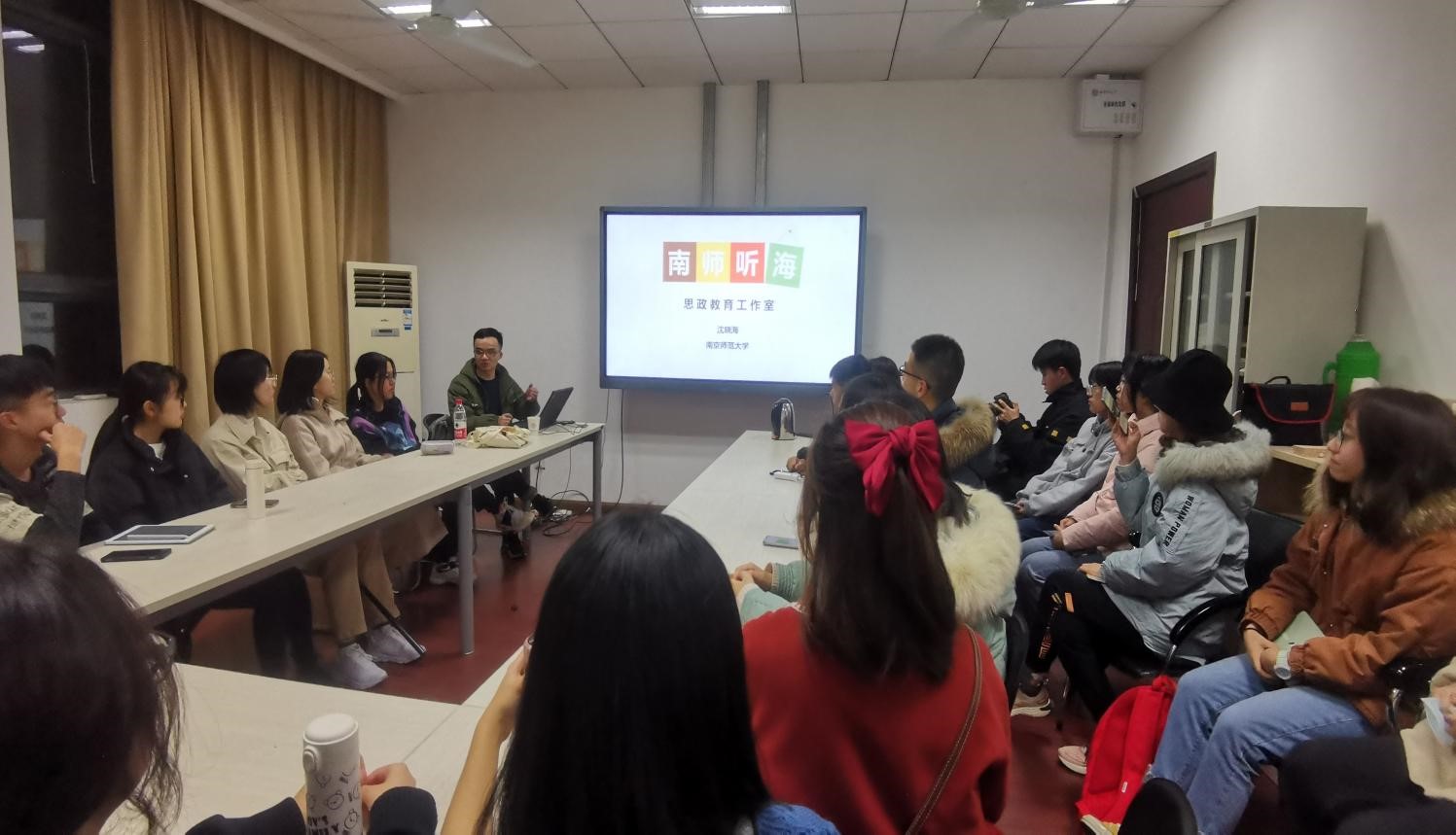 12月3日晚,第九期“人文青年说”优秀院友分享会成功举办,亚洲十大在线博彩平台排名邀请到优秀毕业生沈晓海进行经验分享。沈晓海是人文全球十大網上博彩公司 2013级硕士,南京师范大学团委创新创业部部长,创办“南师听海”思政教育工作室,获得过南京师范大学辅导员职业能力大赛一等奖等校级及以上荣誉30余项。此次分享会,沈晓海围绕自己丰富的工作经验,就辅导员的工作心得以及自己运营“南师听海”思政教育工作室的经历展开分享。辅导员聂小芳以及人文全球十大網上博彩公司 二十余名本科生参与了此次的分享会。