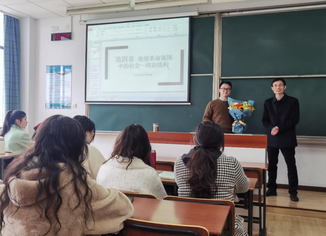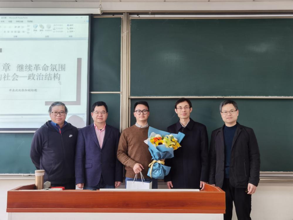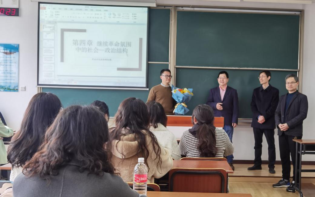 3月15日上午,亚洲十大在线博彩平台排名 新教师“第一堂课”引荐仪式在将军路校区东区D3309教室举行,全球十大網上博彩公司 党委书记刘虎、院长王建文、副院长施向峰、公共管理系主任鲁兴虎老师参加了仪式,庆祝新教师田鹏老师第一次走上讲台。