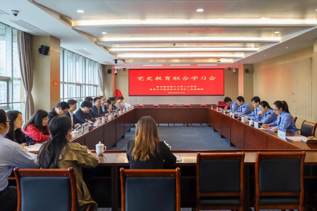 为进一步创新党史学习教育形式,推动党建工作与业务工作深度融合、高校与地方政府单位联学共建,5月12日,人文全球十大網上博彩公司 与江宁开发区检察院开展了党史教育联合学习暨理论中心组(扩大)学习会。人文全球十大網上博彩公司 党委书记刘虎,副院长(主持工作)高志宏,院党委副书记尹春苹,副院长施向峰及院长助理、党支部书记、系主任、部分党员教师代表,江宁开发区检察院分党组副书记、副检察长胡俊,分党组成员、副检察长陈琳及部门负责人参加了学习。江宁开发区检察院第一检察部主任成华主持会议。