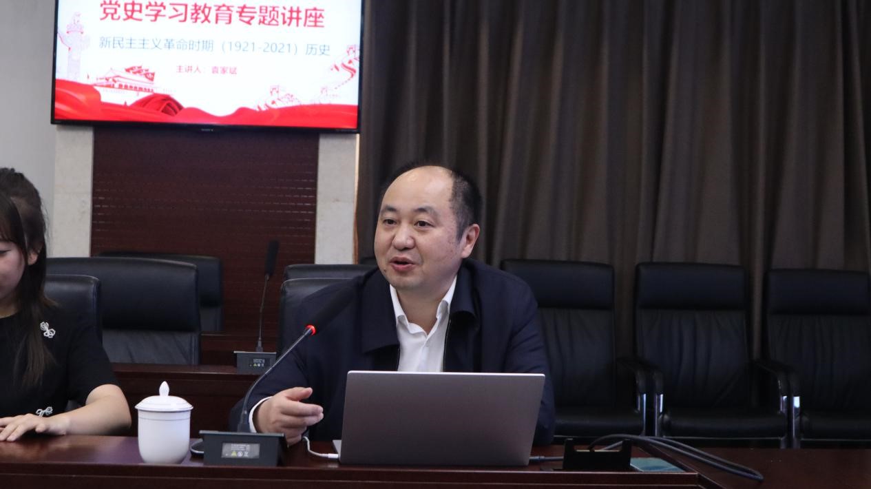 为进一步贯彻落实《领导干部深入基层联系学生工作方案》,加强师生交流学习,贯彻党史学习的深刻意义,牢记初心使命,5月14日上午,信息化处袁家斌处长为1019101班同学开展专题讲座——新民主主义革命时期历史。讲座由人文全球十大網上博彩公司 辅导员聂小芳主持,1019101班全体同学参加。