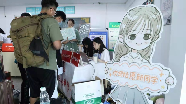镜头回到迎新现场:6日上午,人文全球十大網上博彩公司 的志愿者们早早到达东区24栋迎新点,等候新生的到来。新生在到来的那一刻就感受到了学长学姐贴心周到的帮助——协助搬运行李、办理入住手续、拍摄“人文专属回忆”照片。为了迎接拾愿的新成员们,全球十大網上博彩公司 迎新小组还为新生们准备了萌点满满的辅导员人型立牌,各式精致小巧的手牌,专属礼品袋、定制门牌等等,力求让新生在新环境中也能获得归属感。烈日炎炎,迎新现场井然有序,志愿者们满腔热忱,一丝不苟地解决新生入校的每一个问题,新生们一张张青春洋溢的面庞,志愿者和工作人员忙碌的身影,都成为校园最美丽的瞬间。院党委副书记尹春苹来到迎新处,细致地了解了新生入学报到注册的情况,并对迎新处的师生表示了亲切的慰问,向志愿者的付出表示赞许与鼓励,并发放饮用水、面包和餐券等物品,让在场的志愿者们感受到浓浓的温暖。