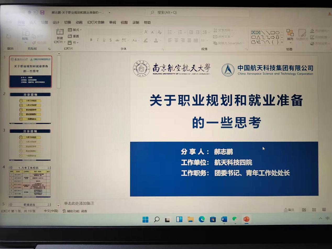 11月21日晚20:00,第十五期“人文青年说”优秀院友分享会在腾讯会议平台如期举行。本期分享会邀请到了优秀院友——郝志鹏。郝志鹏是我校行政管理专业的优秀毕业生,现任航天四院本部团委书记,青年工作处副处长,共青团陕西省委国防工会委员,在工作学习期间积累了丰富的经验。本期分享会,郝书记以“关于职业规划和就业准备的一些思考”为主题,深入浅出地向同学们分享了他的感悟体会。