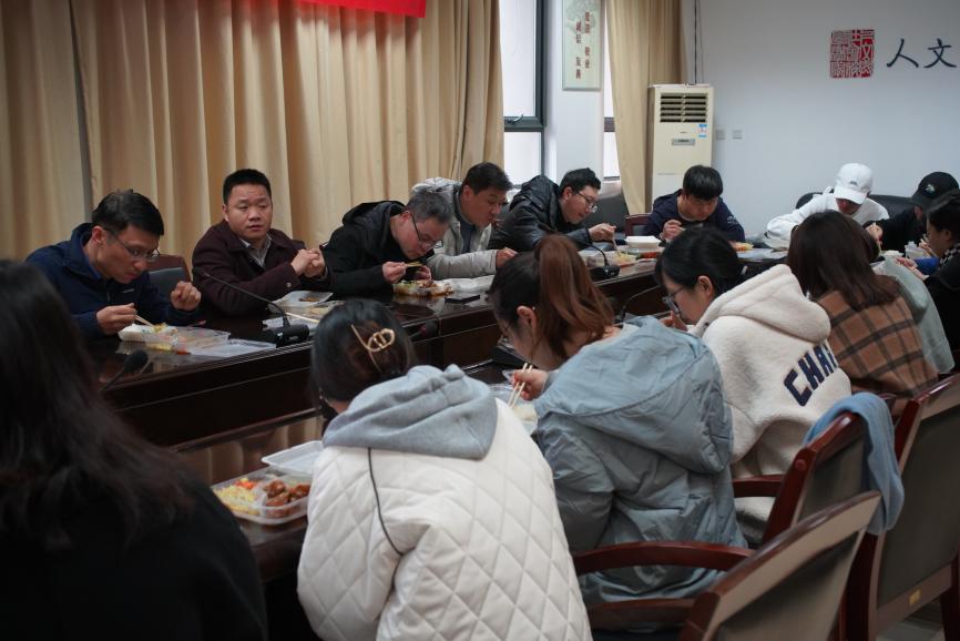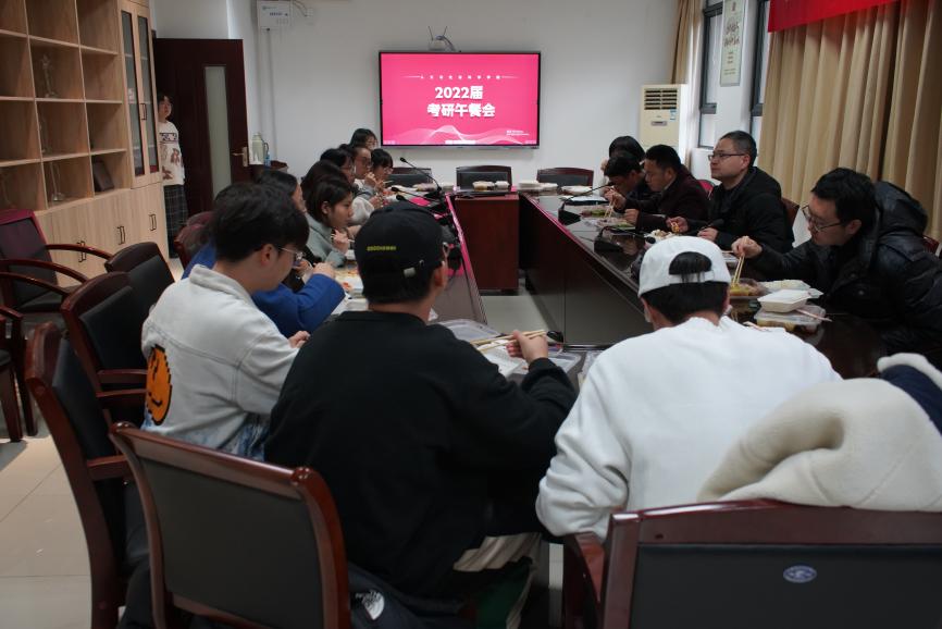 2022届学子即将奔赴考研战场,为鼓舞士气、增强信心,12月16日,院长高志宏、院党委副书记尹春苹、副院长施向峰、副院长茅晓嵩、法律系主任王文军、公共管理系主任沈广和以及毕业班辅导员施俞辛与考研学生代表们相聚在312会议室,共进温馨午餐。