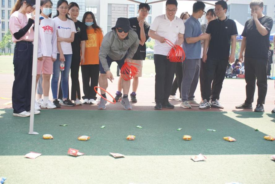小组赛在助威声与欢呼声中开始。“我最了解”校史答题袋鼠跳不仅是同学们展示对南航校史了解程度的舞台,也是师生间寓教于乐的讲台。赛场内外,阵阵整齐的掌声铿锵有力,此起彼伏,参赛师生深受鼓舞,斗志昂扬;在“薪火相传”的夹球接力跑中,同学们你追我赶,尽情挥洒汗水,奋勇争先,超越自我,时刻展现着热情饱满、积极向上的青春活力。套圈游戏深受师生喜爱,老师们将套中的零食,分给小组里的学生,现场气氛活跃,其乐融融。