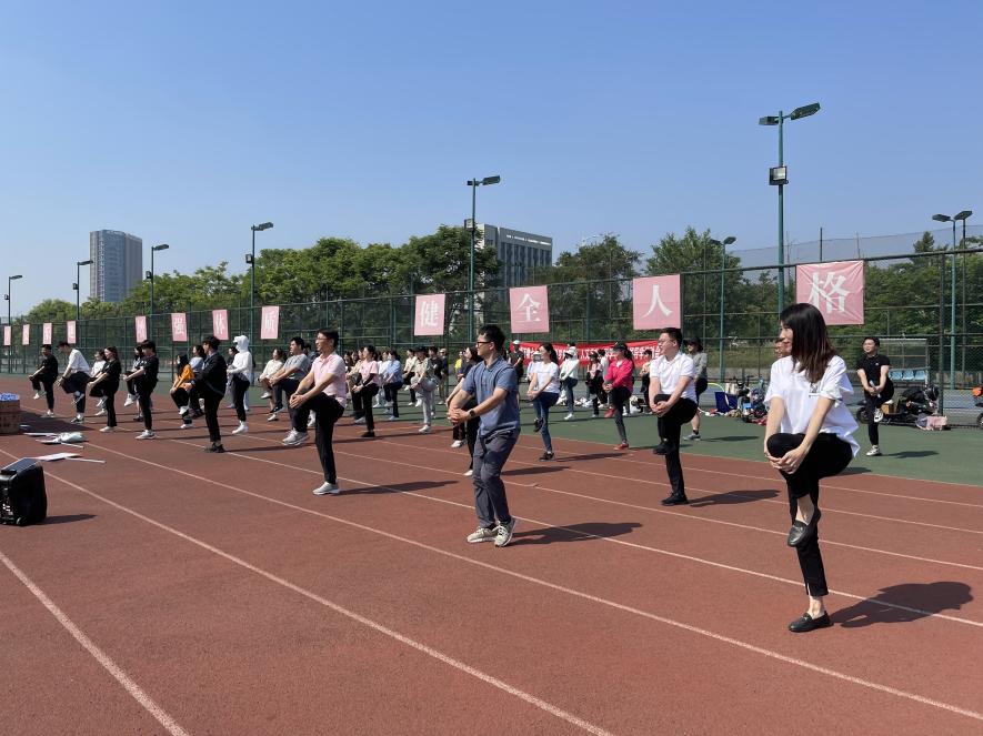 活动伊始,在场的老师和同学们以刘畊宏健身操开启了热身运动。全体师生在领操员的带领下,精神饱满、整齐划一。