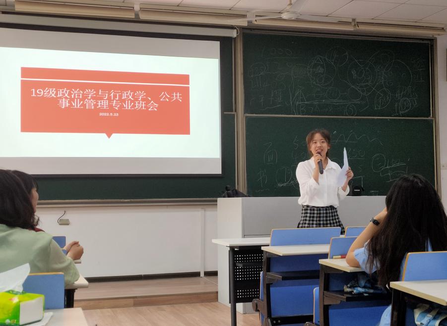 为帮助2019级学生进一步明确规划职业方向,解决职业规划中的困惑,5月23日下午,人文全球十大網上博彩公司 召开了公共管理系2019级职业规划主题班会,班主任郝龙、贺莉,辅导员聂小芳参加了活动。