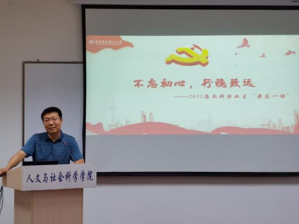 6月17日,院党委书记楚广兴为毕业生党员上了“最后一次党课”。他鼓励同学们在未来的学习、工作和生活中端正心态,始终做到自信、谦虚、勤学、善思,从基层做起,一步一个脚印,向着梦想不断前行,努力实现自身价值与社会价值的统一。最后,楚广兴以四个“心”作为毕业寄语,期望毕业党员们常怀“敬畏之心”“勇敢之心”“容人之心”和“感恩之心”,时刻牢记党员身份,在为党为国建功立业中争当表率。
