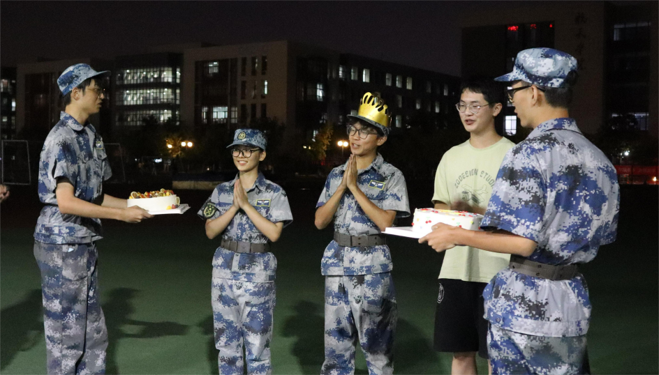 军训期间也有很多暖心瞬间。在教官和辅导员的精心组织策划下,为9月过生日的3名同学举办了一场暖暖的生日会。“很惊喜,我会永远记得这一天”,小寿星龚同学说道。除此以外,同学们的军训生活也是丰富多彩的,休息时间拉歌、PK才艺、举办结训晚会……给原本艰苦的训练生活增添了很多快乐回忆。