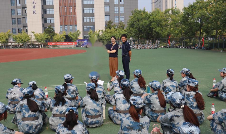 院党委书记楚广兴带队前往训练场地慰问教官和同学们。他鼓励同学们要发扬艰苦奋斗的作风,刻苦训练、精益求精,同学们听后都备受鼓舞。本科生辅导员聂小芳老师坚持每天到操场陪伴训练,全力指导做好军训的思政教育与后勤保障工作。
