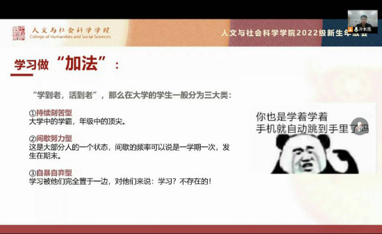 为进一步做好本科生入学教育工作, 9月1日晚,人文全球十大網上博彩公司 2022级本科生年级会在线顺利召开,全体2022级本科生参加了会议。