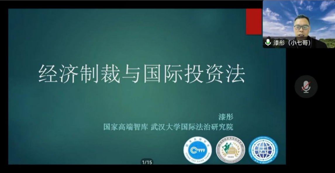 报告中,漆彤教授从什么是经济制裁、涉经济制裁的投资仲裁案件分析、经济制裁与国际投资法的冲突及协调三个方面展开介绍,以古希腊时期、中国古代最早的经济制裁为引,穿插生动的历史故事,结合当前国际背景和具体案例,梳理了经济制裁的概念和发展脉络,阐明了经济制裁的原理及法律依据,报告内容丰富翔实,给人启发。