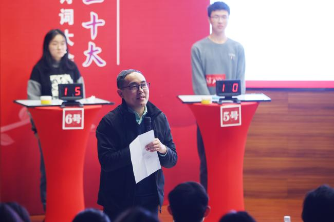 经过初赛、复赛的激烈角逐,有15位优秀选手从2300余名师生中脱颖而出进入决赛。决赛现场分设“先声夺人”“寻诗知句”“飞花逐月”三个环节。“先声夺人”中的三组赛题紧扣二十大报告中提到的传统文化、自然环境、改革创新等关键词,将马克思主义基本原理同中华优秀传统文化相结合。