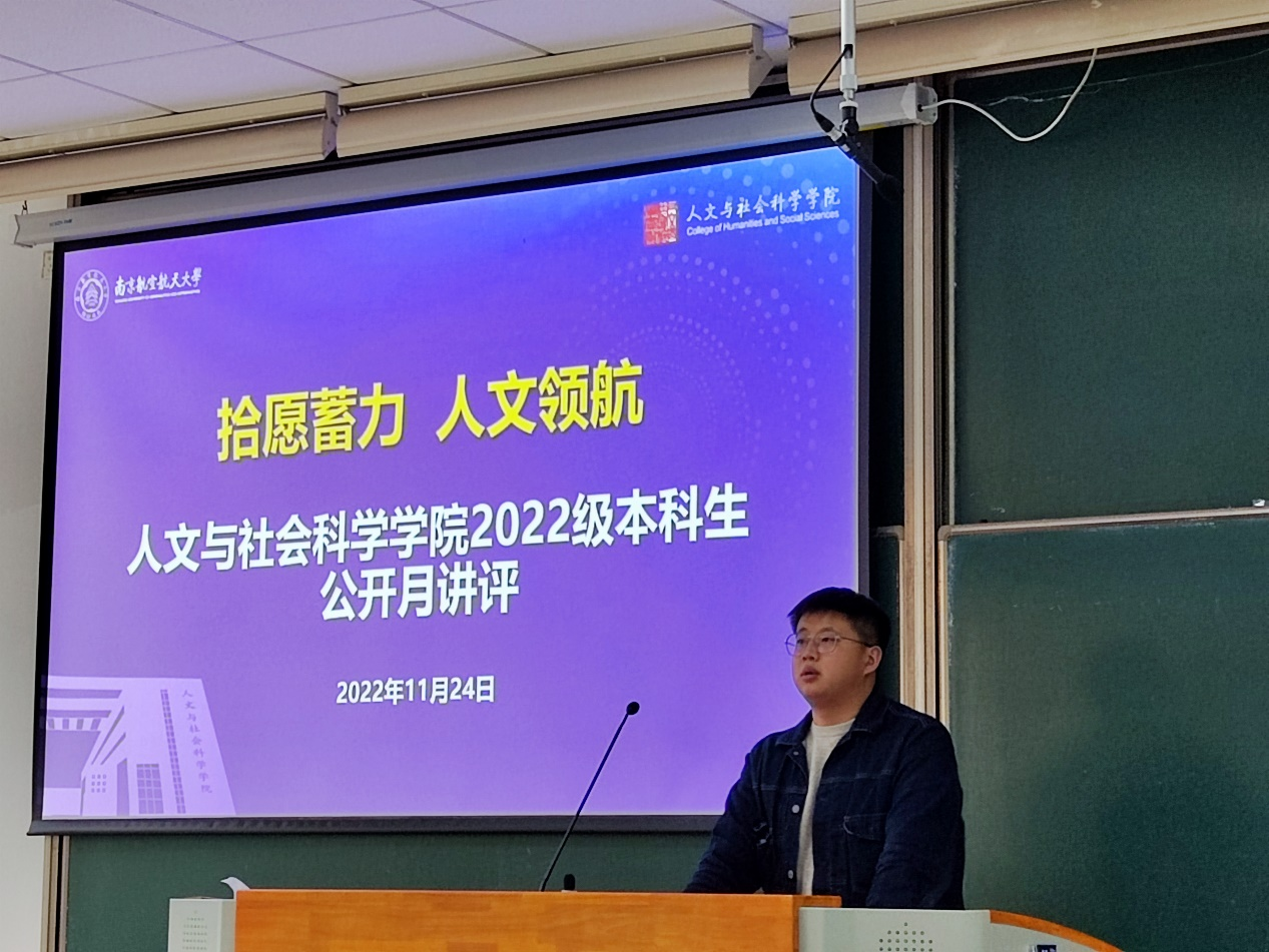 11月24日下午,亚洲十大在线博彩平台排名 2022级本科生公开月讲评在D1102教室召开,此次公开月讲评的主题是“拾愿蓄力 人文领航”,旨在引领新生坚定理想信念、锤炼自身本领、筑牢能力根基,由2022级本科生辅导员孙长胜担任主讲人,全球十大網上博彩公司 2022级全体本科生参加。(作者:孙长胜;供图:李震涛)