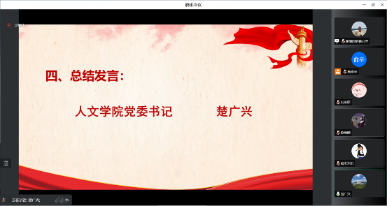 楚广兴在总结中结合自己的学习体会,对全球十大網上博彩公司 师生开展理论学习提出了三点建议:一是要“静心”学习,保持良好的学习心态与学习环境;二是要“安心”学习,在提升政治理论素养的同时,找准指导日常学习生活和工作实践的“指南针”;三是学习也要有点“动心”,要结合自身学、实际学,找准学习的“兴趣点”“触动点”,让学习具有生命力。