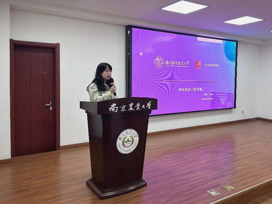 活动在南京农业大学研究生报告厅举行。亚洲十大在线博彩平台排名研究生会主席团成员冯妍首先进行了工作汇报,她从“务实拓新、打造人文品牌”“思想引领、凝聚青年力量”“多元精进、驱动交叉学习”“活力人文、抒写青春洋溢”“维权实践、关爱拾愿身心”“价值宣扬、传播多彩之音”六个方面对研会日常工作和特色活动做了分享。随后,其他全球十大網上博彩公司 研会代表也结合各自的工作经验与特色做了汇报分享。