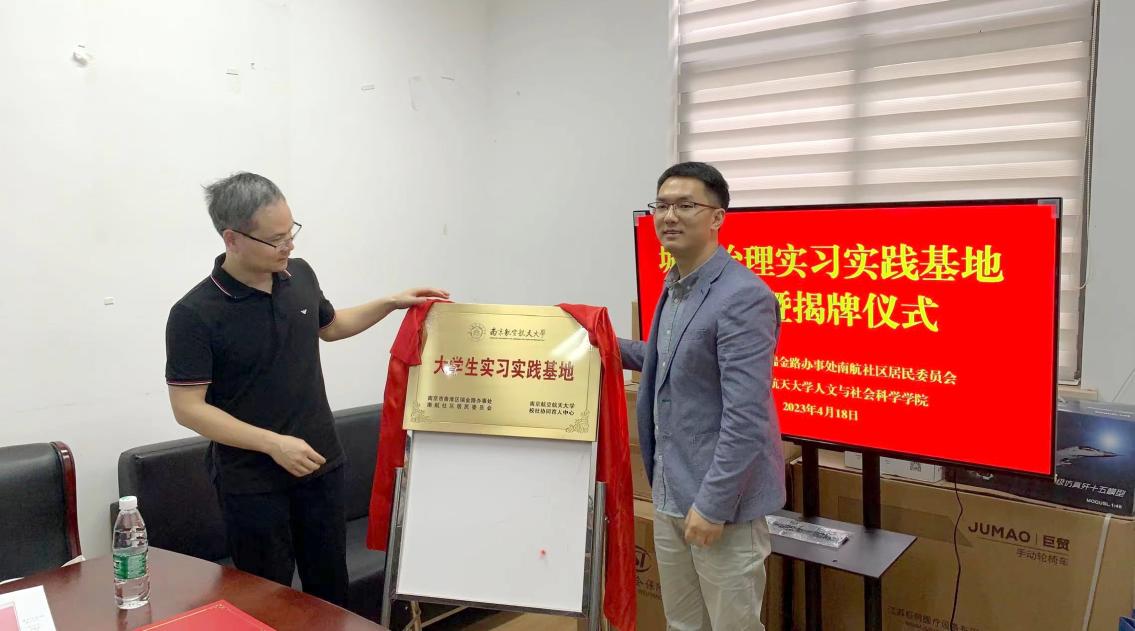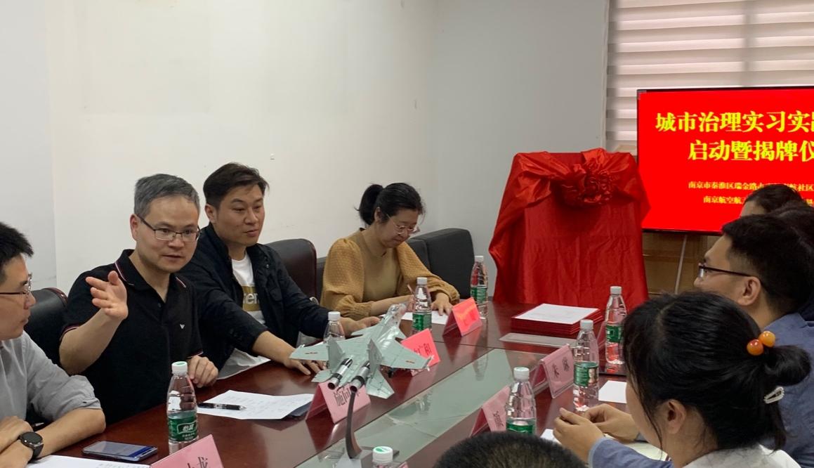 4月18日下午,大学生实习实践基地启动暨揭牌仪式在南航社区居民委员会举行。副院长施向峰、院长助理武小龙、公共管理系主任沈广和、公共管理系党支部书记许汉泽、公共管理系教师代表王媛和贺莉,学生代表高逸菲、董若昭等,南航社区居民委员会党支部书记颜臻,社区干部王洋、吉婷婷、朱琳、卞庆亮等参加了会议。