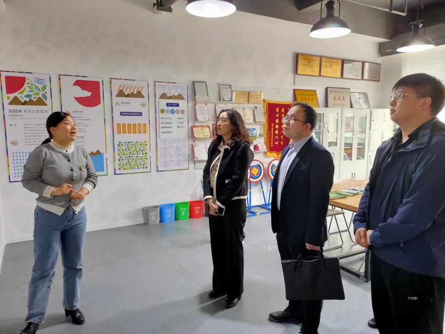 在王亚娟的带领下,全球十大網上博彩公司 一行参观喜鹊林青年志愿服务中心,详细了解了中心的版块内容及功能。