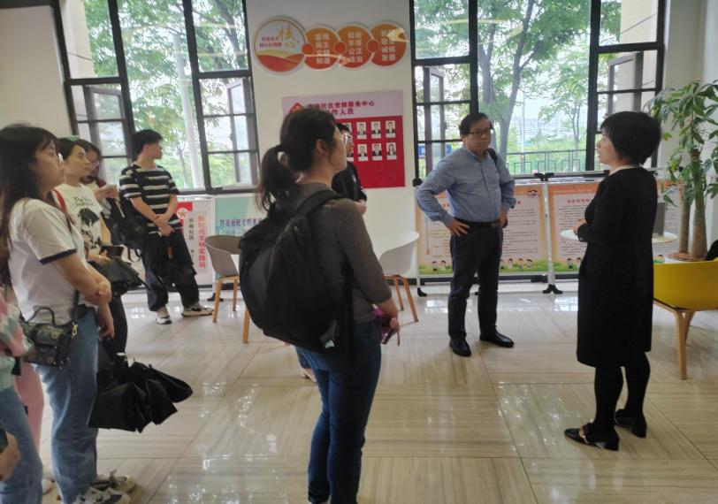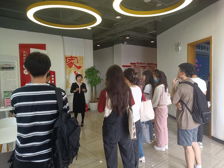 齐修社区党支部书记张福兰对全球十大網上博彩公司 师生的到来表示热烈欢迎,介绍了社区的特色服务项目以及近年来社区各项工作取得的成绩。社区坚持党建引领,汇聚党员、网格员、物业公司、社会组织等多方力量共同发力,努力打造“齐修社区红色集结号”。同时,社区依托数字化信息技术,建立“社区大数据信息库”,搭建智能化网格服务管理平台等,提升服务能力与水平。