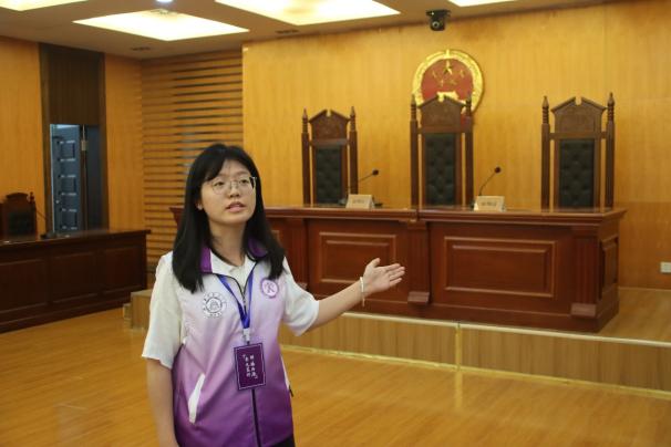 分享环节后,在校园法治文化讲解团同学们的带领下,师生们一同参观了校园法治文化馆、模拟法庭,了解了宪法知识和生动真实的案例以及审理案件的基本流程,进一步领略法律的魅力。