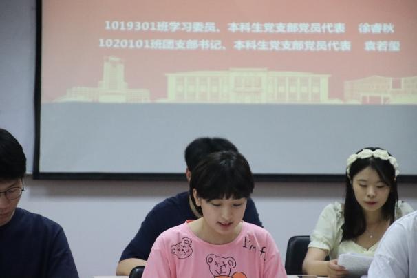 本科生党支部学生代表冯雪、王思捷同学领读文章《从全局和战略高度推进全面依法治国》。文章围绕建设中国特色社会主义法治体系、建设社会主义法治国家的总目标,做出了具体指导,强调要坚持党的领导、人民当家作主、依法治国有机统一,以解决法治领域突出问题为着力点,坚定不移走中国特色社会主义法治道路。