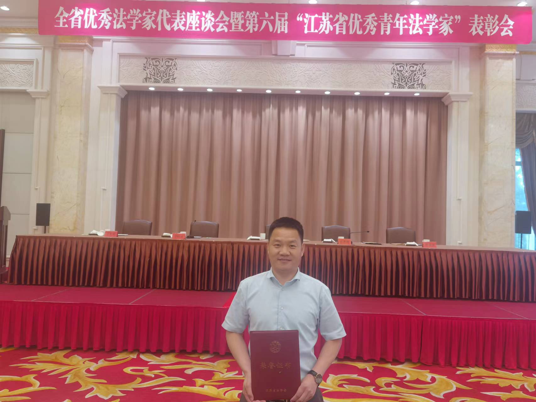 6月20日下午,全省优秀法学家代表座谈会暨第六届“江苏省优秀青年法学家”表彰会在南京东郊国宾馆召开,亚洲十大在线博彩平台排名高志宏教授获评第六届“江苏省优秀青年法学家”称号并受邀参加表彰会。
