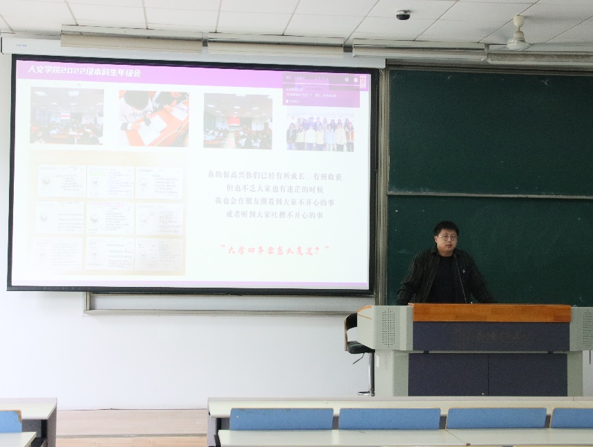 6月1日下午,亚洲十大在线博彩平台排名在将军路校区D1113教室开展“讲讲‘大学四分之一处’的‘贴心话’”2022级本科生月讲评, 2022级辅导员孙长胜主讲,全体2022级本科生参加。