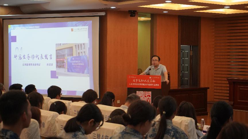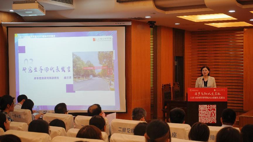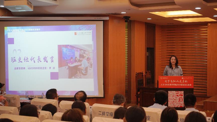 班主任代表季洁和研究生导师代表杨兰芳、许汉泽为新生们送上“大学和研途攻略”。他们结合自身的科研和学术经历,以亦师亦友的身份与同学们进行沟通交流,鼓励同学们培养爱读书的好习惯、保持健康的生活方式、建立良好的人际关系,度过美好、充实的校园生活。
