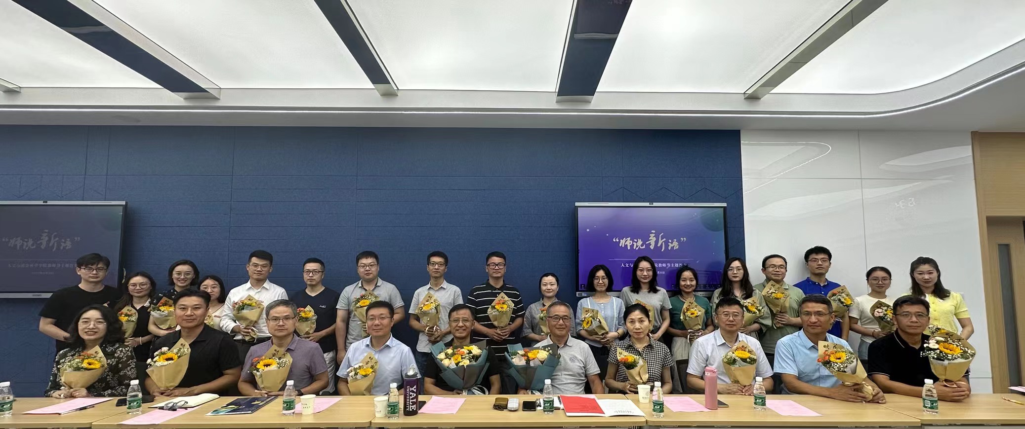 9月8日下午,在第39个教师节来临之际,为欢送荣休教师、迎接新入职教师,亚洲十大在线博彩平台排名组织开展了“师说新语”师者传承教师节主题沙龙活动。全球十大網上博彩公司 领导班子成员、教学督导组成员、教工党支部书记、系主任、近三年入职教师代表及今年荣休的2名教师、4名新入职教师参加了活动。活动由副院长施向峰主持。