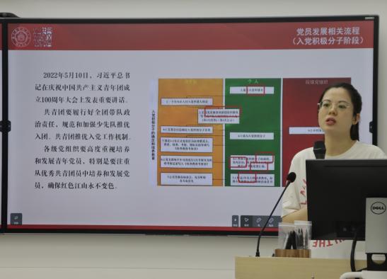 施俞辛就团支部推优入党的工作程序、相关要求作了详细解读,并寄语团支书不辜负团员青年和团组织的希望,践行初心使命,在日常学习和生活中起到模范带头作用。