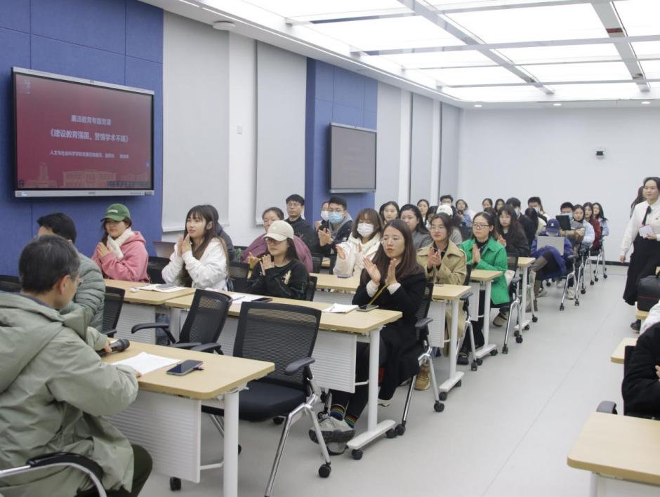 学习会共分为两个部分,第一部分由施向峰作了题为《建设教育强国,警惕学术不端》的廉洁教育专题党课。他结合学术不端的相关典型案例开展了警示教育,深入剖析原因,提出需要防范的风险点及防范措施。他强调,清廉作为人的品格基石至关重要。清廉不仅是诚实、公正的行为准则,更是深植于我们心中的道德信仰。他提醒师生们,要自觉维护学术精神,反对学术不端行为和投机取巧的心理,遵守和履行学术规范和学术道德。