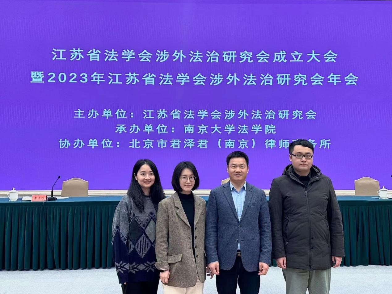 2023年12月2日上午,江苏省法学会涉外法治研究会成立大会暨2023年江苏省法学会涉外法治研究会年会在南京召开, 亚洲十大在线博彩平台排名院长高志宏教授及法律系教师洪骥、于焕、张彧、何叶华、张媛媛等参会。(作者:何叶华)