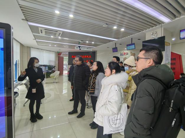 在街道便民服务中心负责人带领和讲解下,团队一行首先参观了街道的便民服务中心。在走访交流中,师生们详细了解了顶山街道在推进政务服务供给,“街社同办”改革,智慧赋能“顶小通”自助机应用,警务办公优化以及 “城市就业客厅”建设等基层治理方面的现实情况。