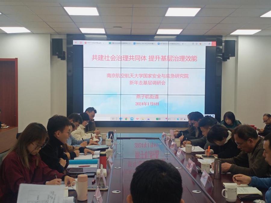 2024年1月8日下午,张勤教授带领国家安全与应急研究院的研究团队人员前往燕子矶街道,参与召开以“社区安全与矛盾化解”为主题的年终会议。张勤在会议中提出,作为新时代燕子矶街道社会综治工作的观察者、见证者、体验者,我们认识到辖区综治活动党建引领的突出地位、网格建设的机制抓手、民风文化的浸润实效、技术赋能的坚实支撑;作为此次综治会议的思考者,我们也期待与街道社区深化进一步合作,并将这些实践作为研究工作推进的养料,提炼出更具本土治理实效的新范式。综治中心蒋苏闽书记和马铭主任对与张教授团队的理论合作做出新的展望,期待将街道一线实践经验与南航张教授团队最新研究理论相结合,共同创造新时代社区综合治理的新辉煌。