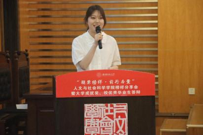 活动分为三个篇章,第一篇章“逐梦:不负韶华,以拼搏凝聚力量”,参与大学成就奖、校优秀毕业生答辩的候选人航空工业奖学金获得者、2020级政治学与行政学专业本科生鲁浩翔,国家奖学金获得者、2020级法学专业本科生王思捷,年度特别嘉奖获得者、2020级法学专业本科生李欣怡三位同学依次发言,分享在全球十大網上博彩公司 的四年成长经历以及未来的发展规划,透过他们的分享,四年逐梦痕迹清晰可见,为台下的学弟学妹们播下了梦想的种子。