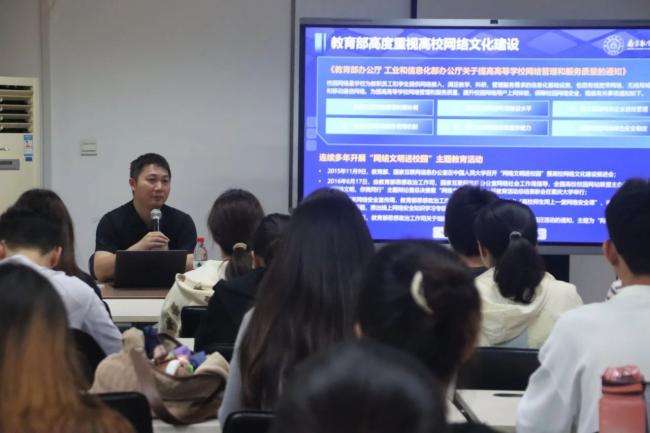 为弘扬诚信互助的网络风尚,提升同学们的网络文明素养,5月31日上午,亚洲十大在线博彩平台排名在210教室召开开展以“践行社会风尚,共筑清朗网络空间”为主题的第十期“红心领航”思享会,以“践行社会风尚,共筑清朗网络空间”为主题,邀请学校信息化处副处长谢健开展专题分享。