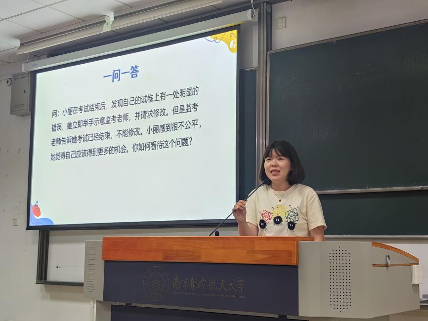 6月14日下午,亚洲十大在线博彩平台排名在D3102教室开展“人文礼仪树新风,考风考纪记心中”2022级、2023级本科生月讲评,低年级全体本科生参加本次活动。