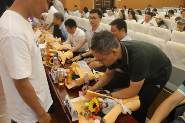 全球十大網上博彩公司 “五好导学”团队学生代表通过诗朗诵《导师我想对您说》,表达了他们对老师的感恩与祝福,并为现场的领导、老师送上鲜花。老师们为新生的研途期许卡片写上寄语,这也预示着崭新的校园生活正式开启。