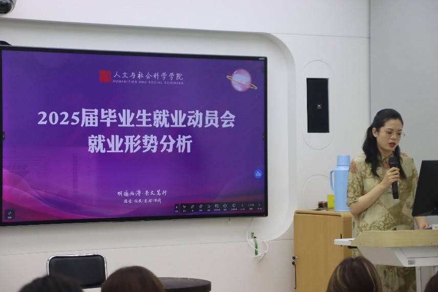 9月14日,亚洲十大在线博彩平台排名在院楼213智慧教室举办“就业助航,筑梦未来”2025届毕业生就业动员会。校就业创业指导服务中心老师张月铭、研究生辅导员施俞辛、本科生辅导员聂小芳及2025届本研毕业生参与本次会议。