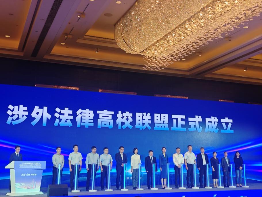 9月23日,江苏(南京)涉外法律服务中心与涉外法律高校联盟成立。中国政法大学党委常委、副校长常保国,省司法厅党委委员、副厅长韩震龙,南京市副市长、公安局局长常和平、律师等行业代表、14所高校代表约150人参加活动。会议同时举行了2024南京鼓楼服务业扩大开放推介会及合作项目签约仪式。