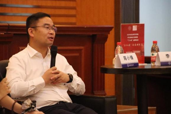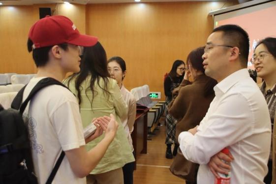在交流互动环节,同学们踊跃提问,现场气氛热烈,两位嘉宾针对同学们的困惑均耐心一一解答。
